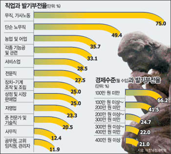 Çз°ú ¼Òµæ ¼öÁØ, »çȸÀû ÁöÀ§°¡ ³ôÀº ³²¼ºÀϼö·Ï ¹ß±âºÎÀüÀ²ÀÌ ³·´Ù´Â ¿¬±¸°á°ú°¡ ±¹³» óÀ½À¸·Î ³ª¿Ô´Ù.